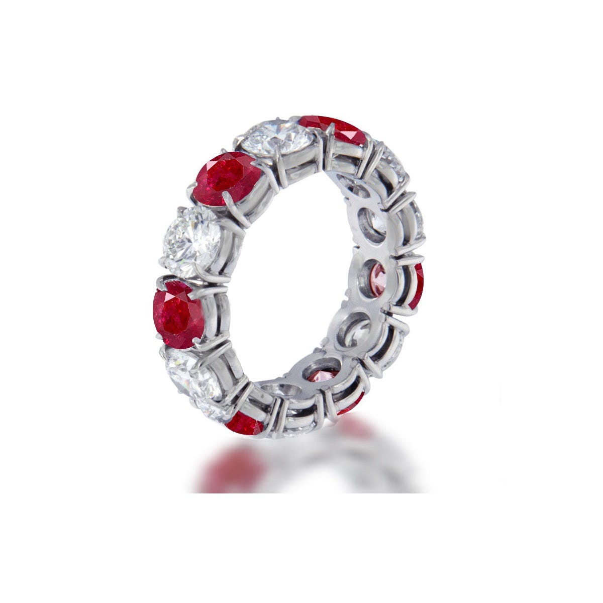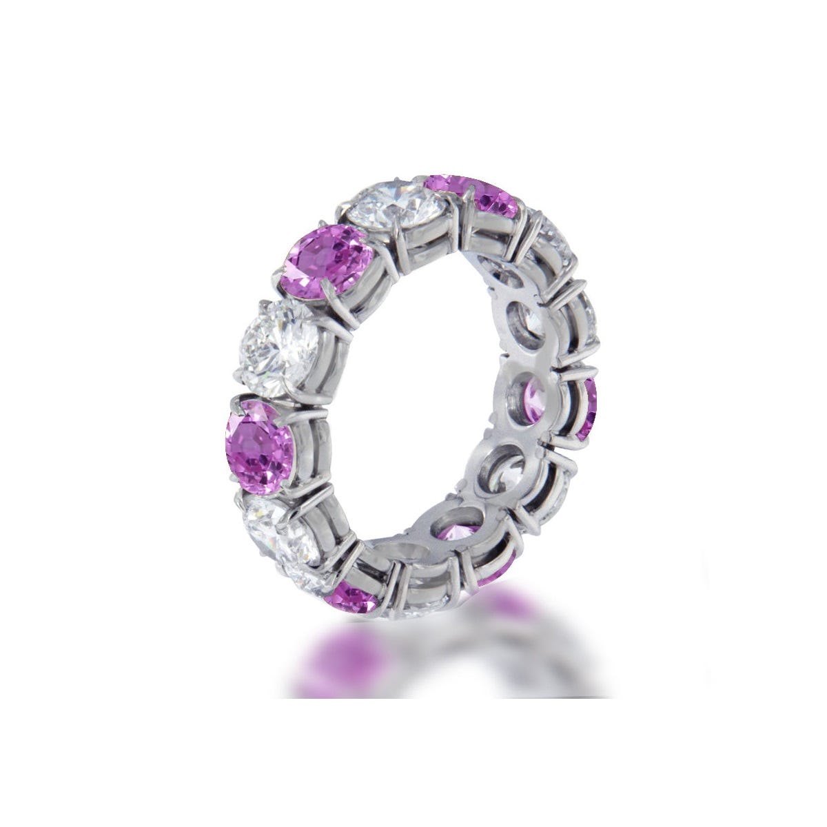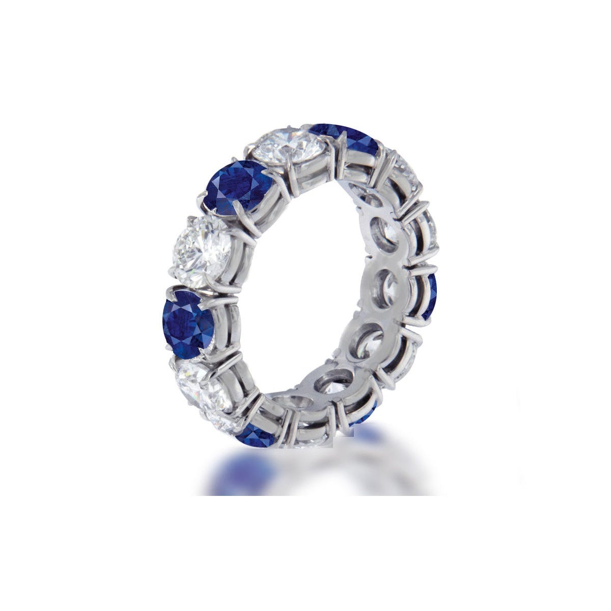 110 custom made unique stackable alternating round cut sapphire diamond prong set eternity ring